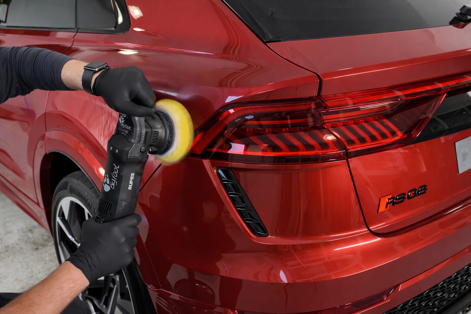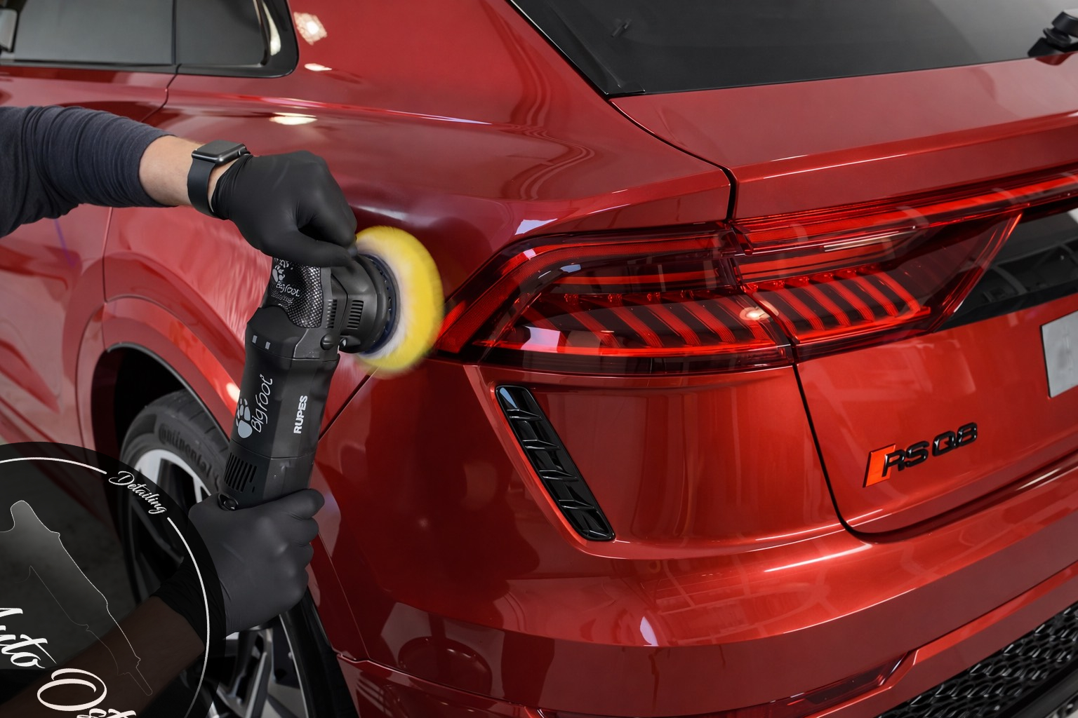 Práce probíhá výhradně s profesionálními lešticími systémy Rupes, různými typy kotoučů a prémiovými lešticími pastami. Díky tomu je možné bezpečně a efektivně pracovat i na těžko přístupných místech, hranách a detailech karoserie.